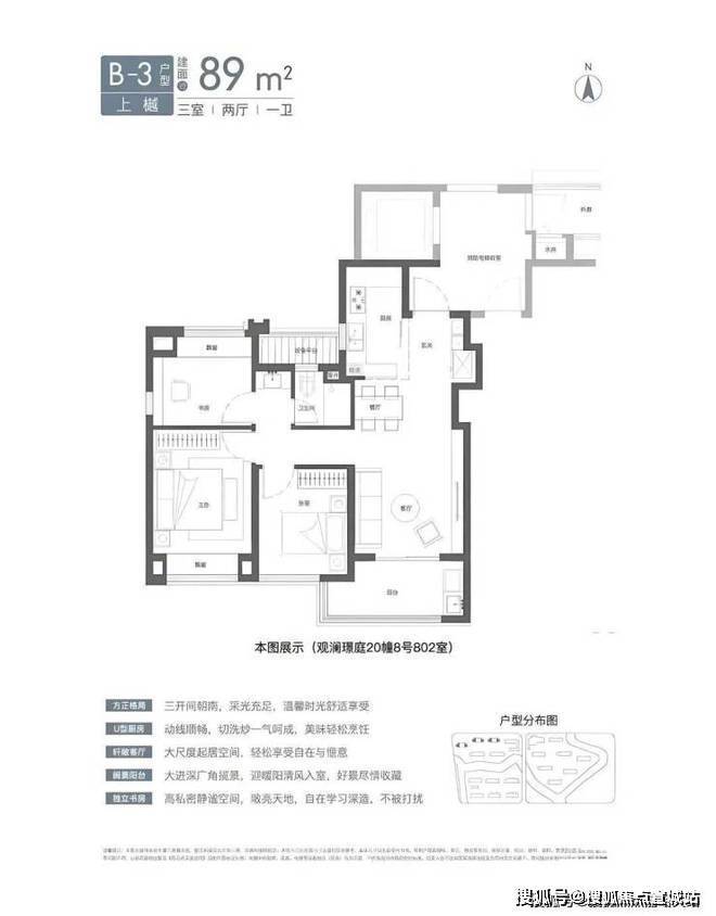 约89-129㎡轻奢三房、阔绰四房,三批次推售394套房源:89平米133套;105平米227套;129平米34套