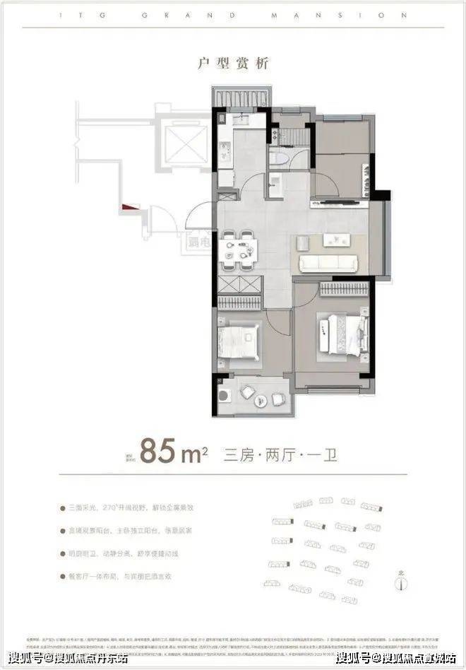 建面约85-96㎡ 3房户型