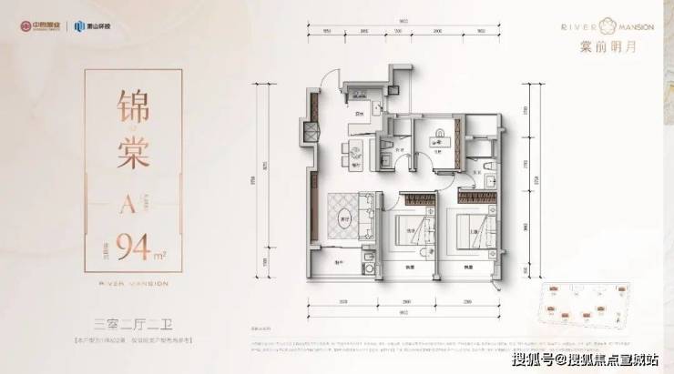 ☝棠前明月建面约94-106方户型图