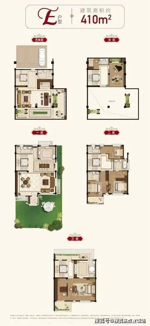 约250-380㎡私家室内泳池、约200㎡视频会晤空间,约220㎡套房式主卧,可容纳4-6个室内私家车位(以上均为建筑面积)