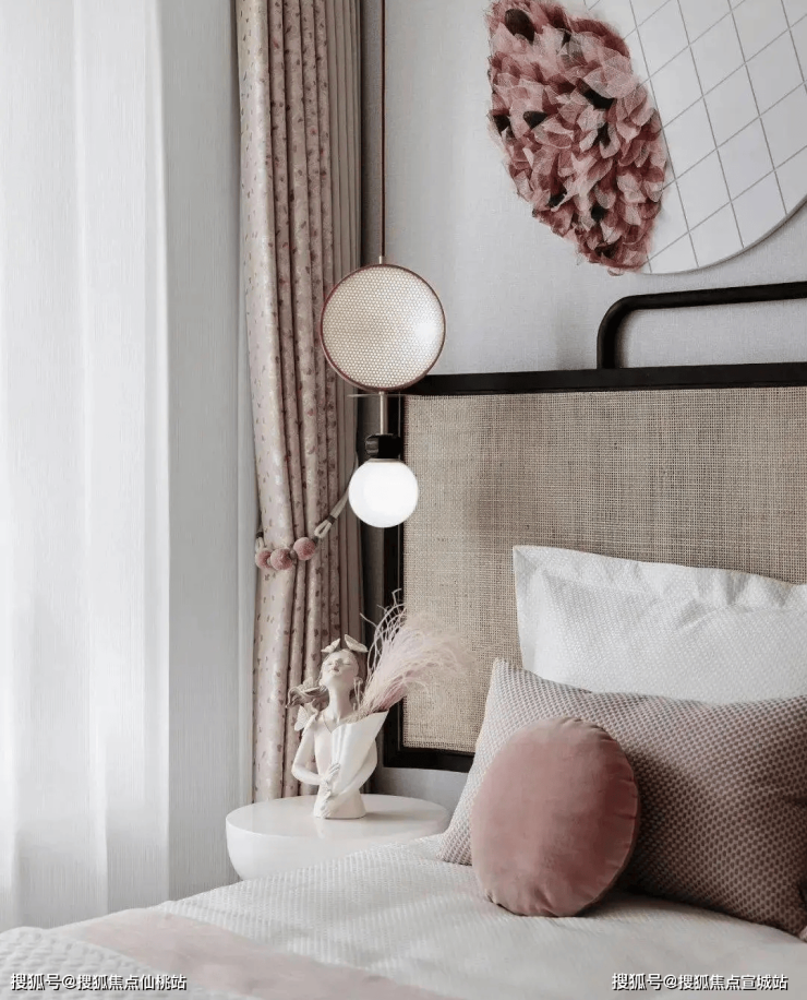 女儿房的空间设计,沿袭了主卧的藤编式大床,同时融合了粉色之调,更有属于少女的浪漫之感.