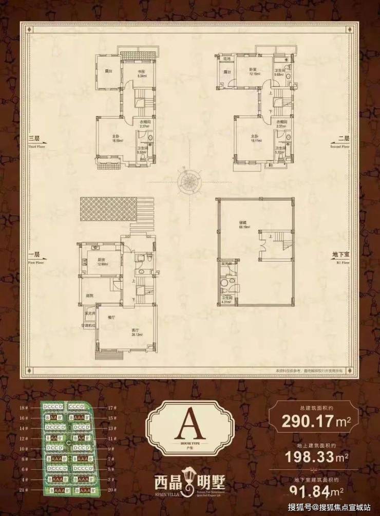 A户型:总290.17地上198.33地下91.84