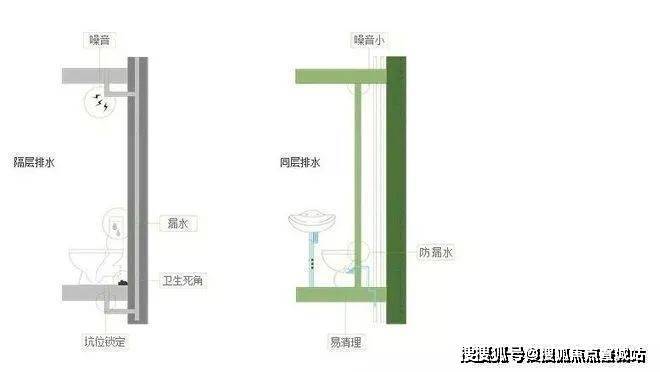 这样的设计大大节约了室内空间、美化了视觉效果,同时消除卫生死角,防止异味。各种管道不穿越楼板,上下住户无干扰,做到静音排水,告别噪声。