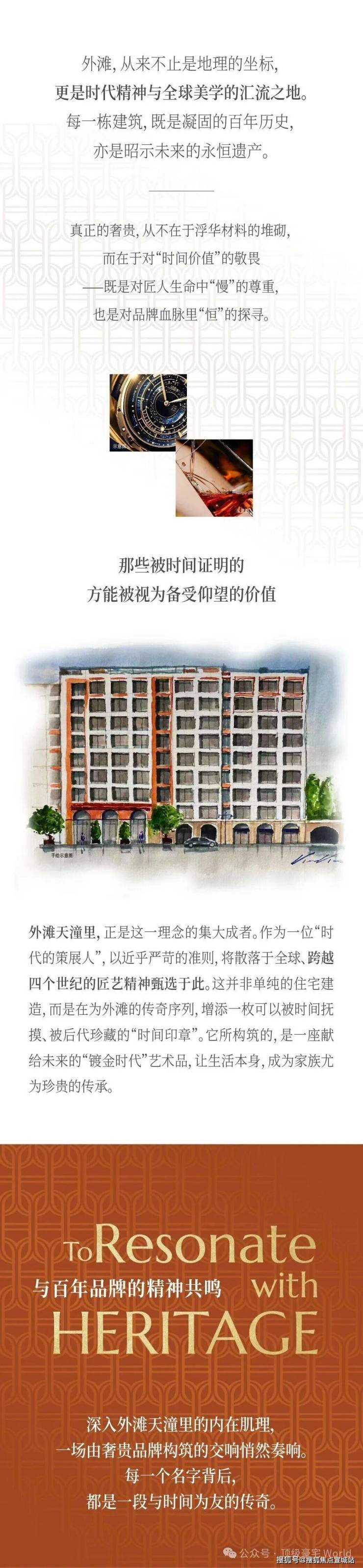 【天潼里】位于上海一江一河(黄浦江与苏州河)黄金交汇处,距离外白渡桥约300米,与外滩的直线距离约600米,紧邻外滩历史文化风貌区,陆家嘴的城市天际线近在咫尺,是上海百年一遇,且今后不再有的绝版宝地!该项目还可以步行至外滩,享受外滩的夜晚美景和顶级配套。