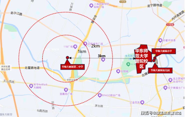 华师大目前在上海有普陀、闵行2个校区,布局如下图: