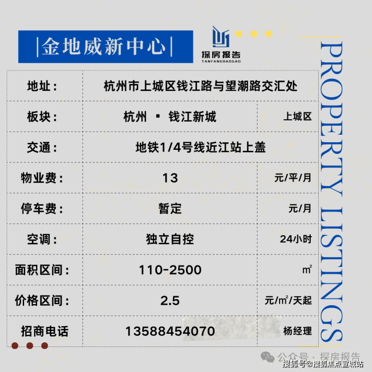 ●【项目概况】:总建筑面积约20万方,力邀全球第一建筑事务所Gensler操刀设计。项目由4栋3.2-3.4万方独栋办公围合而成,招商销售以独栋、整层、大宗优先;项目具有楼体冠名权、昭示性更强,符合总部企业的独立办公需求。背靠钱江新城金融总部集群,重点招揽世界500强、浙江TOP民企总部、银行证券等金融总部型企业,缔造钱江新城金融总部的超甲写总部办公标杆。