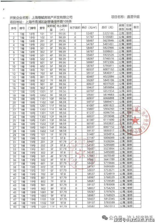 项目一房一价表▼