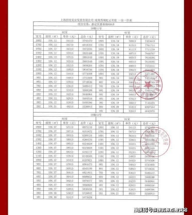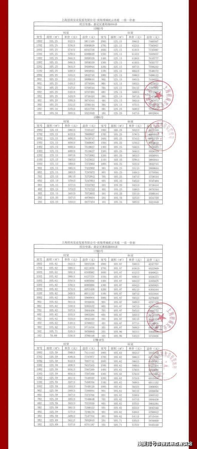 项目一房一价表