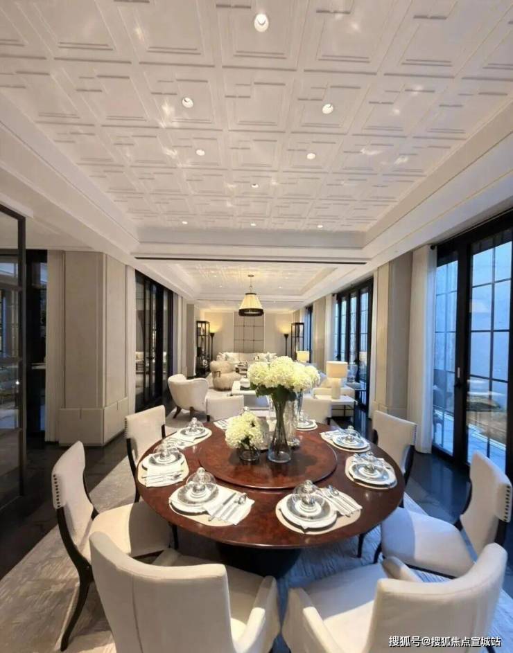 ▲大尺度的庭院空间 外紧内松契合中国传统院落居住哲学理念,以“外紧内松”空间设计手法,对风貌别墅空间尺度进行当代拓新,让空间服务于生活。外紧-通过外部百年巷道肌理活化、建筑错落排布景筑交融,打造美而精的体验;内松-宅院内以多重庭院、立体花园、大落地窗等实现室内尺度拓新,给家人更多停留空间、打造建筑会呼吸的松弛感。