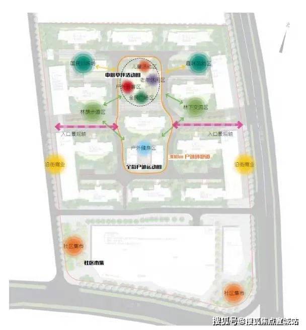 景观方面,中央核心景观轴线连接社区南北。以阳光草坪为中心,布置儿童活动区、健身活动区和社区会客厅、林下广场空间等。