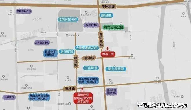 海珀云庭位于昆山青阳北路东侧、金浦路北侧,占地面积38378.2㎡,容积率1.8,规划10幢15-17F住宅楼,仅418户。