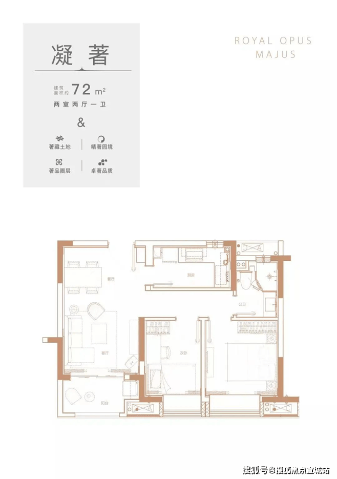 建面约72m²的两室两厅一卫设计,大大降低了置业门槛,对于刚需置业者也是非常友好的一个价格。户型方面,南北通透,居住舒适。两开间朝南,全明设计,采光面广。