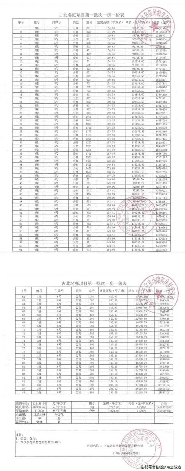 本次房源88套均价11万/㎡