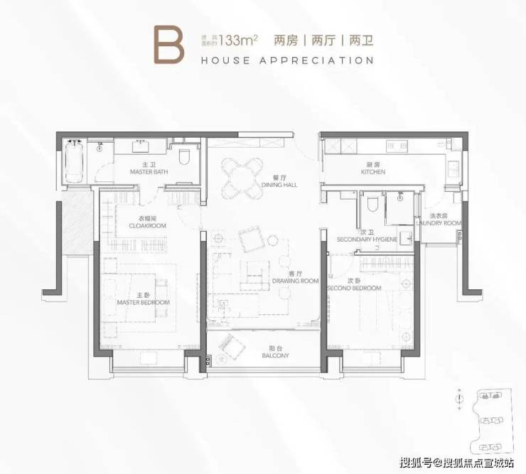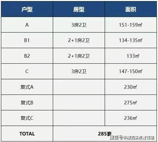 主力户型:2房133㎡、2+1房135㎡、3房150-154㎡