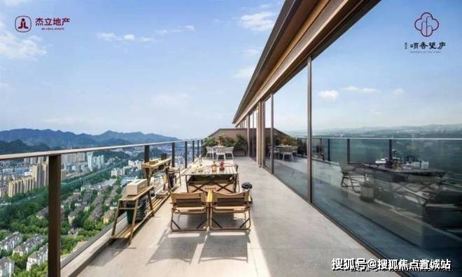 杭州杰立颂香望庐售楼处电话☎:400-8828-814(售楼处预约看房热线)最为极致的是上叠的餐客厅,双面落地玻璃围合,270°自然光如瀑布一般!并且,客厅与露台间还做了无门槛设计,让室内外的界限消弭于无。颂香望庐样板房实景-上叠餐客厅