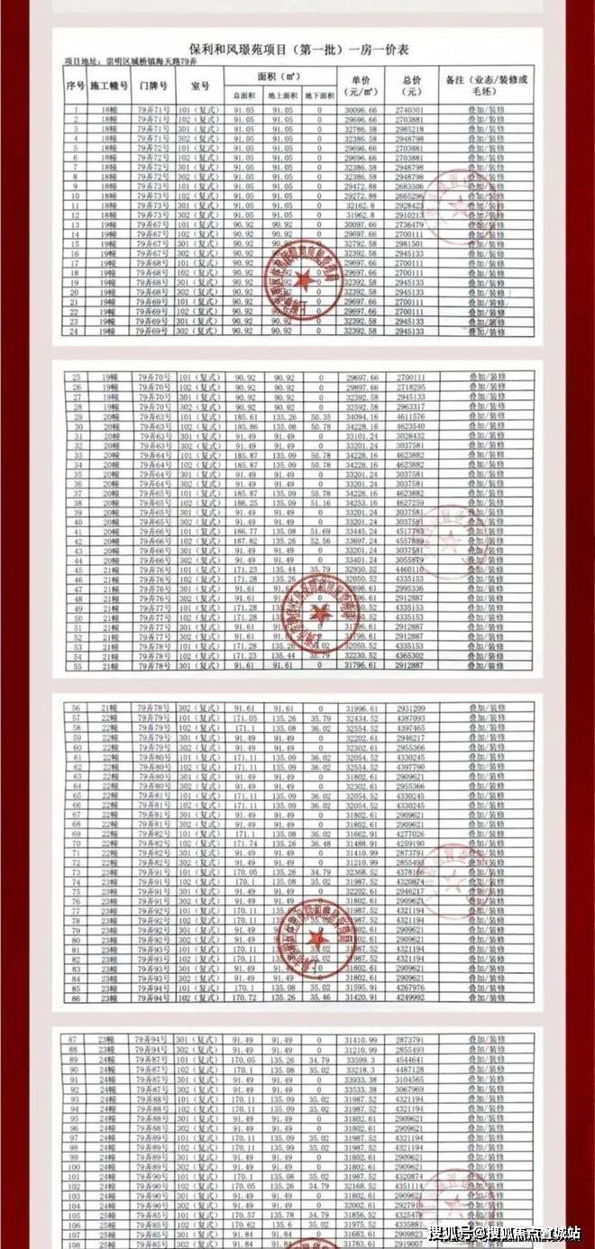 一房一价表: