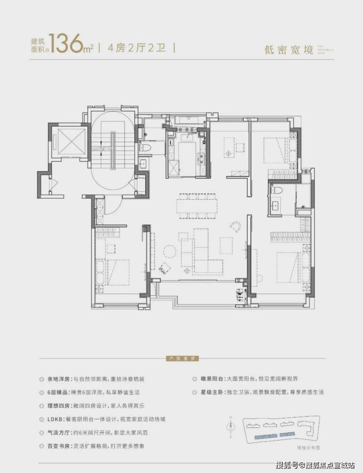 建面约136㎡6层洋房纯粹的亲地性和高得房率,既能满足三代同堂居住需求,也能保障私密性和居住体验感的提升;