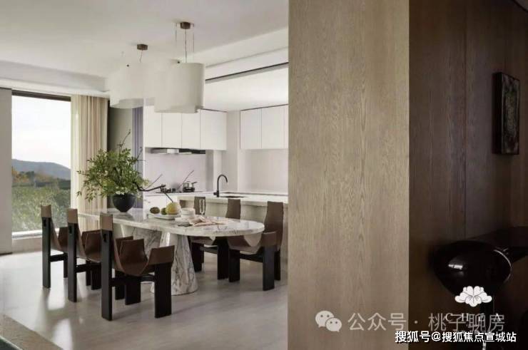 这座水庭也是一整面「水镜」,将中心的乌桕树、周围的超大白玻、精致的艺术雕塑都倒映其中。