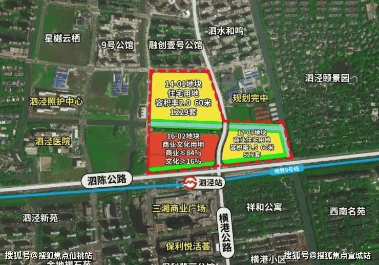 地块位于9号线泗泾站北侧,东至洞泾港、南至泗陈公路、西至外婆泾路、北至恒泽路,出让面积129624.71㎡,起始价48.0251亿元,最高限价52.508亿元。