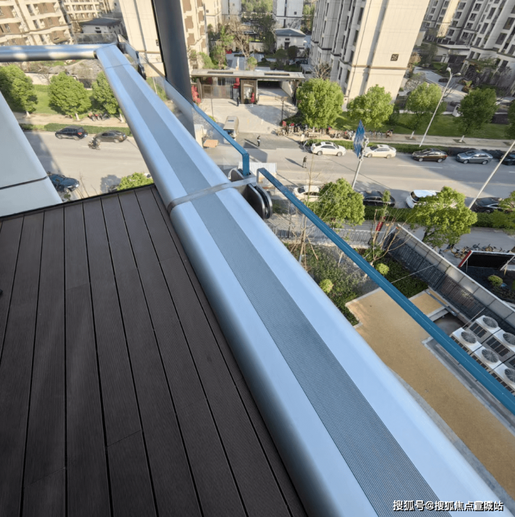每户阳台并没有被包裹,四周并没有传统意义上的柱子,而是凌空跃起,做到270°无边框视野的效果。
