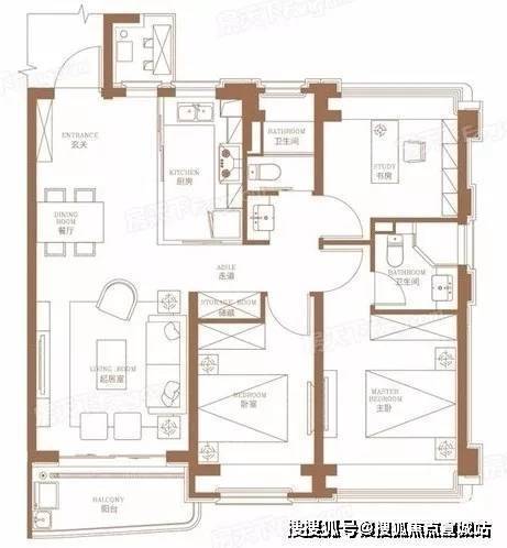 117㎡三房两厅两卫户型图