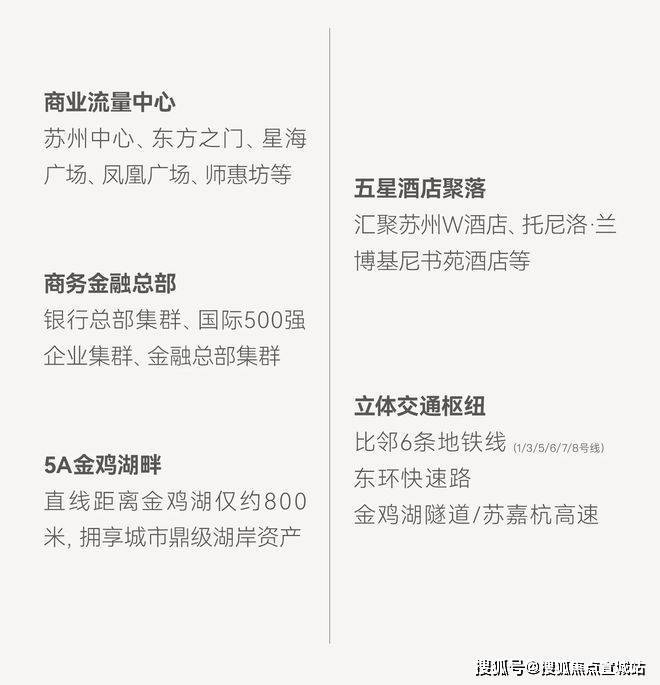 商业配套:周边环绕苏州中心、东方之门、星海广场、苏悦中心等多个大型商圈,自身商业裙楼还将引入购物、餐饮等潮牌业态,满足日常及高端消费需求。