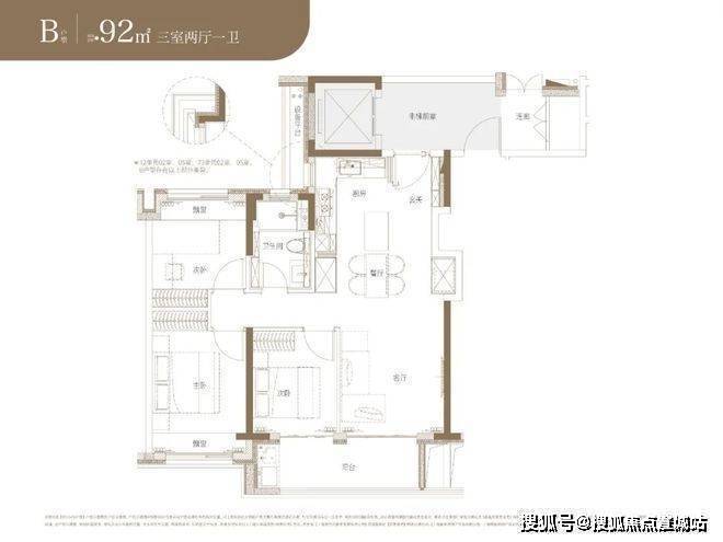 上海宝山四季隐秀售楼处电话☎:400-8558-334✔✔✔建面约92㎡3房2厅1卫,户型三开间朝南、再加上“2个飘窗+双联阳台”,不管是采光、视野、通风、私密性,还是实用性都十分出色.