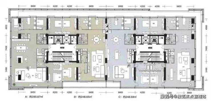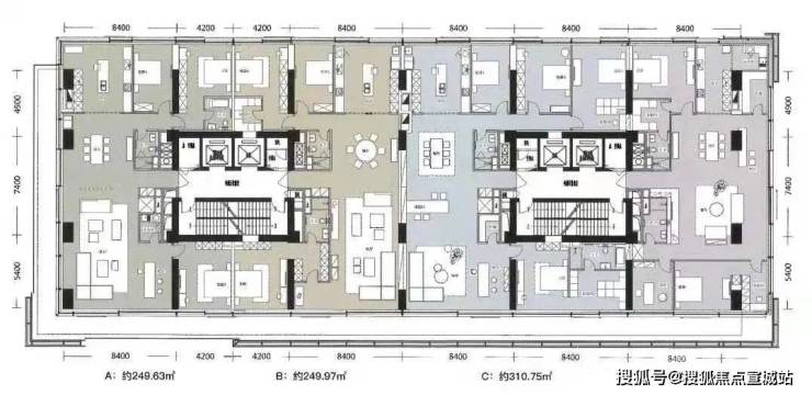 •面积:200.96㎡-𝟐𝟓𝟎.𝟏𝟒㎡(交付三房两厅三卫)