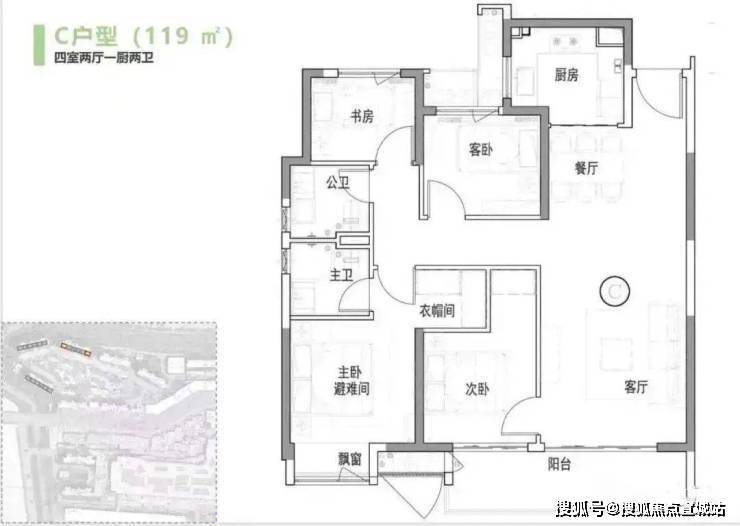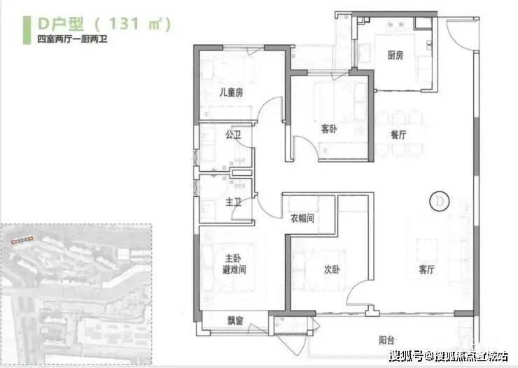 建面约135㎡:四室两厅两卫,主卧套房设计