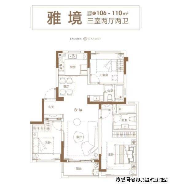 此外,项目还有建面 约106-110㎡三房可供选择,户型图如下