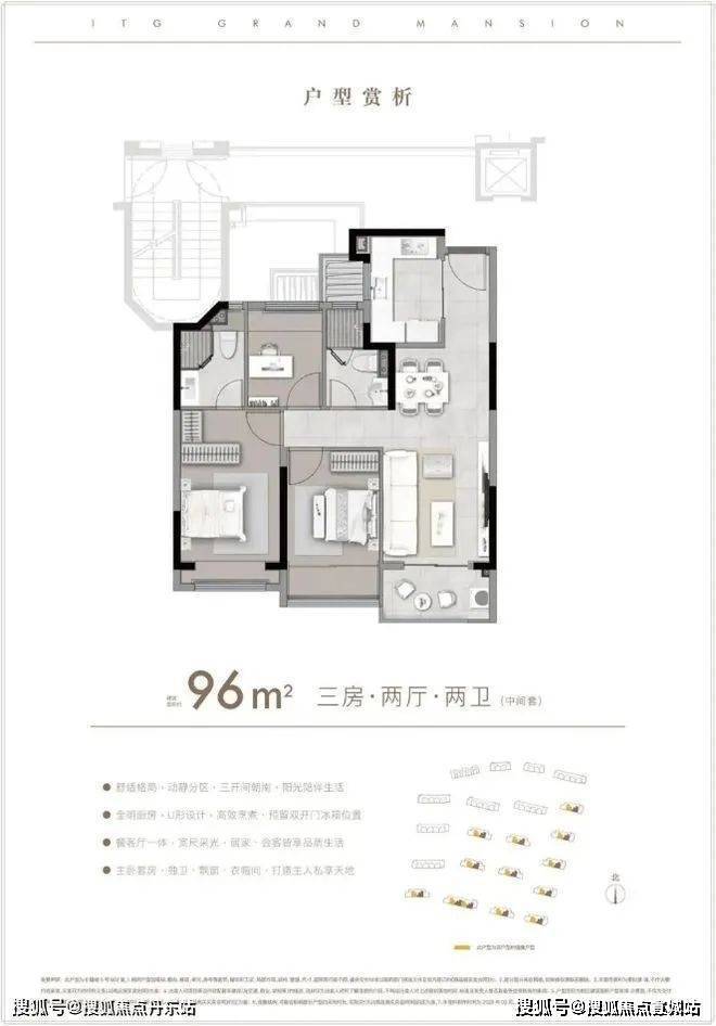 建面约85-96㎡ 3房户型