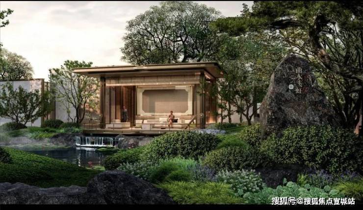园林采撷《梁园飞雪图》画中意境及神韵,引入曲水飞虹、万倾涵碧、松间、观澜、林隐等景观组团,再现“枯山水”东方禅意画卷,缔造具有东方韵味的新中式之美。