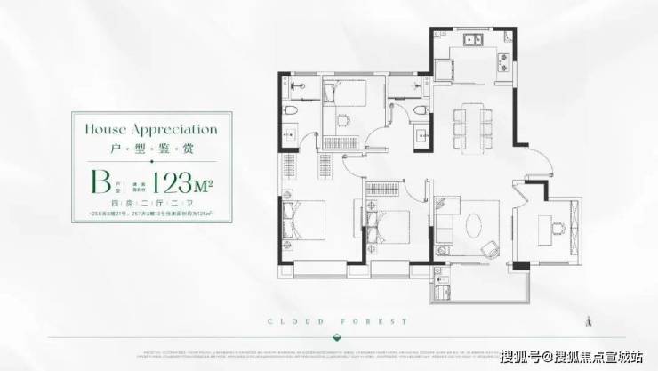 B户型建面约125㎡4房总价约14000-1500万