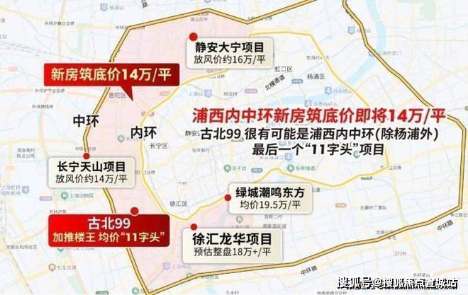 随着绿城潮鸣东方以19.5万/㎡开盘,浦西内中环房价迎来跳涨潮: