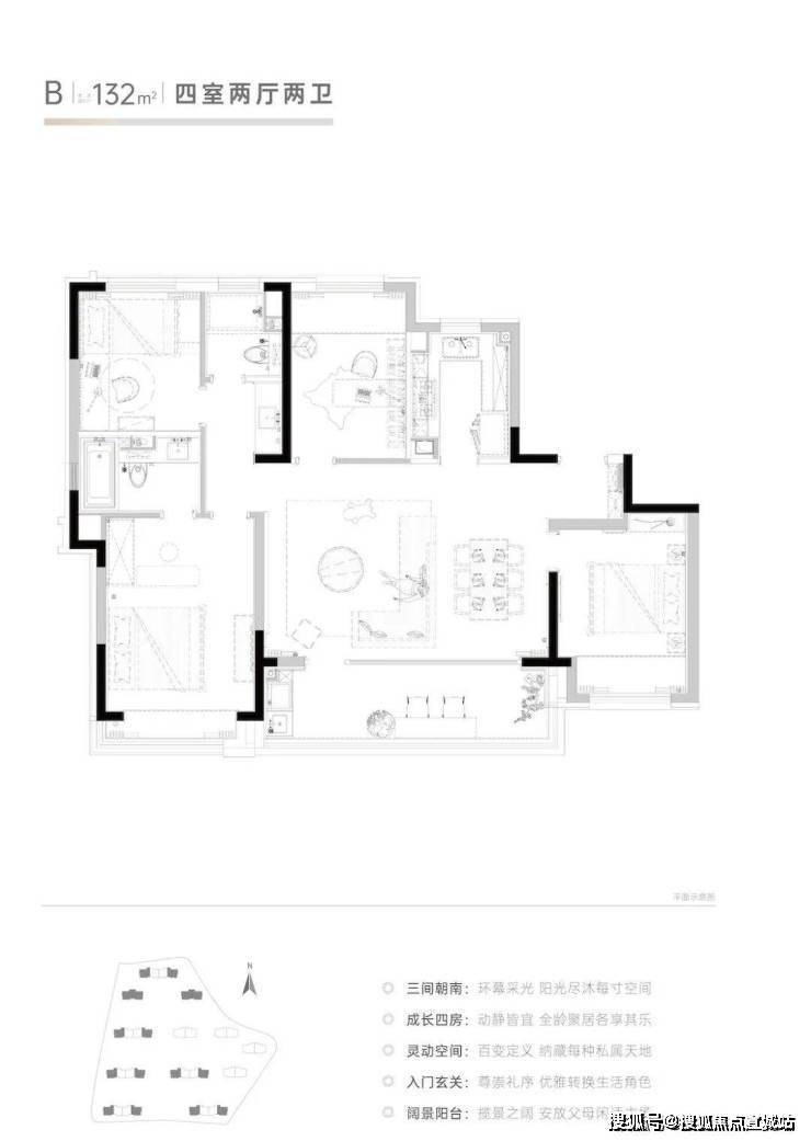 主力户型:建面约122㎡三居、132㎡四居、160㎡四居。