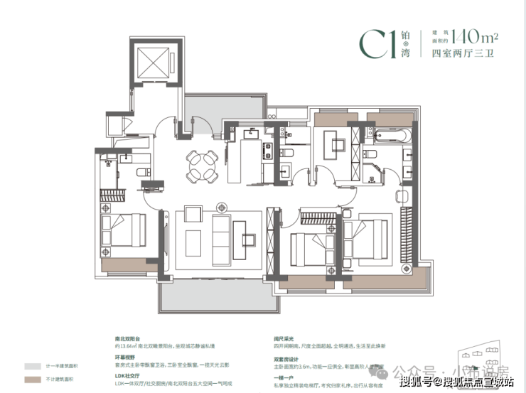 如果有进阶改善置业需求的客户,可以选择建面约140/175㎡4房2厅3卫!