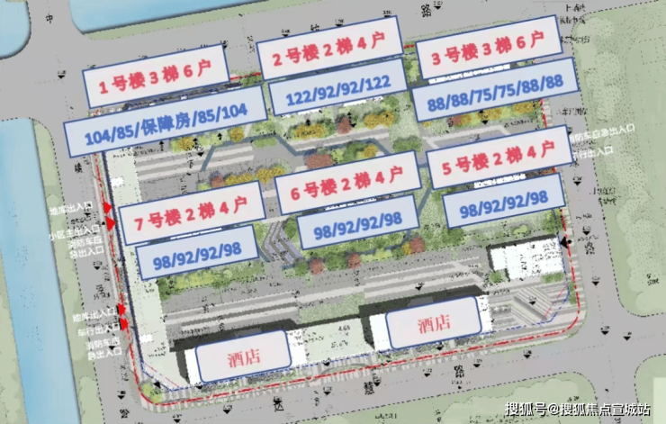 根据设计方案显示,项目由5栋18-19F商品住宅、1栋18F保障房、2栋酒店以及部分商业配套组成;