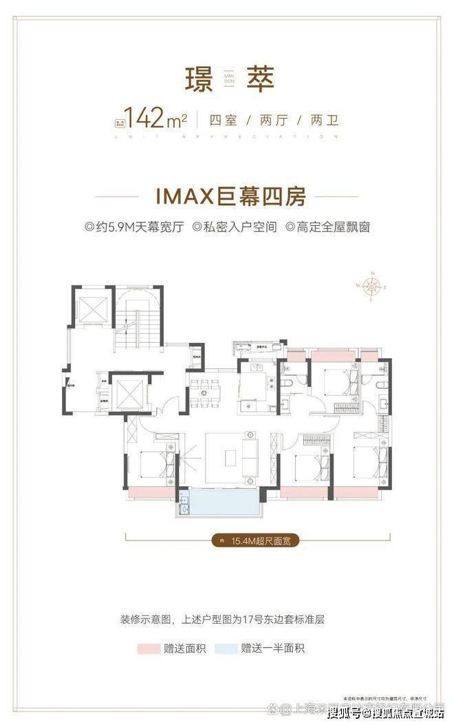 四点五个面宽朝南+约5.9m的宽厅设计,南向面宽达到惊人的15.4m,大宽厅还可以打造灵动空间,老人、小孩在客厅玩游戏、练瑜伽等,营造出更多丰富的生活场景。在静安、黄浦等市区上班的工作群体都值得一看!