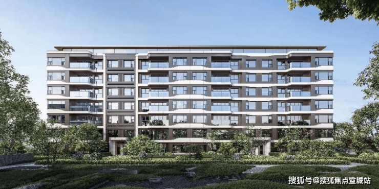 洋房立面运用横向舒展的弧形线条,延续了海派花园洋房的弧形阳台设计,浅灰色的主体建筑色调,搭配门头的米白色铝板,建筑顶部的屋顶塔冠,香槟金色装饰线条,让建筑整体散发出海派摩登的精致时尚感。