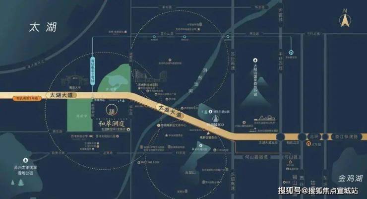 同时和萃澜庭位于苏州高新区科技城核心位置,向东1km为科技城文体中心、2km为科技城核心区TOD项目,向西1.5km为南大苏州校区