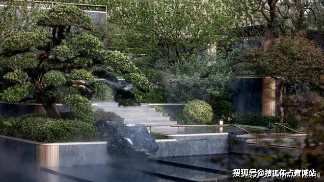 沿着山石视线一路向上,售楼处电话☎:400-8558-334✔✔会发现在「山顶」还有一棵姿态挺拔的罗汉松,非常有辨识度.不是只有高楼大厦才是地标,樾青岚的入户同样是很难被模仿的独特主入口.