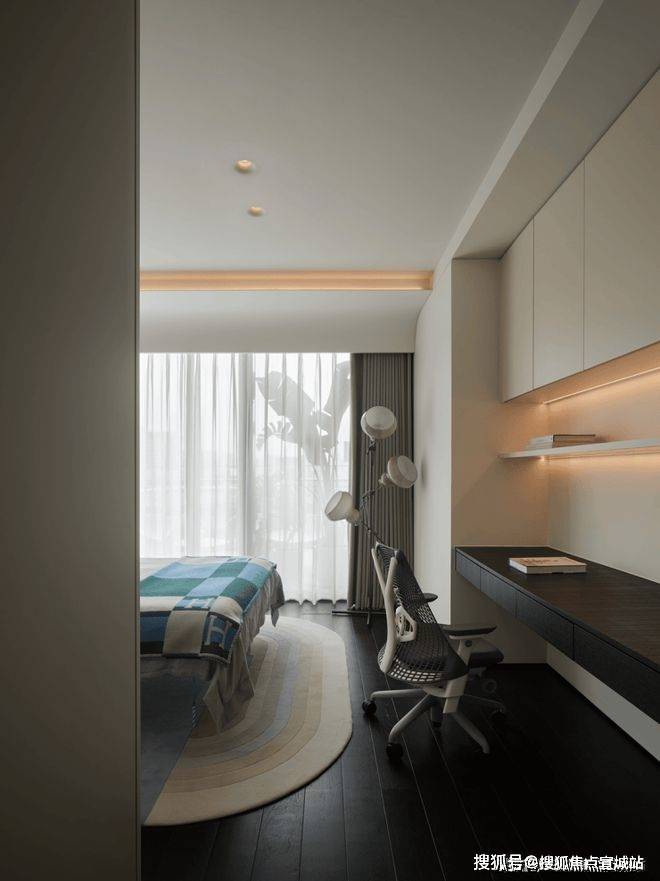 男孩房的设计充分尊重孩子的个性和喜好,风格简约而不失温馨,家具的尺寸经过精心选择,营造出宽敞自由的成长空间。