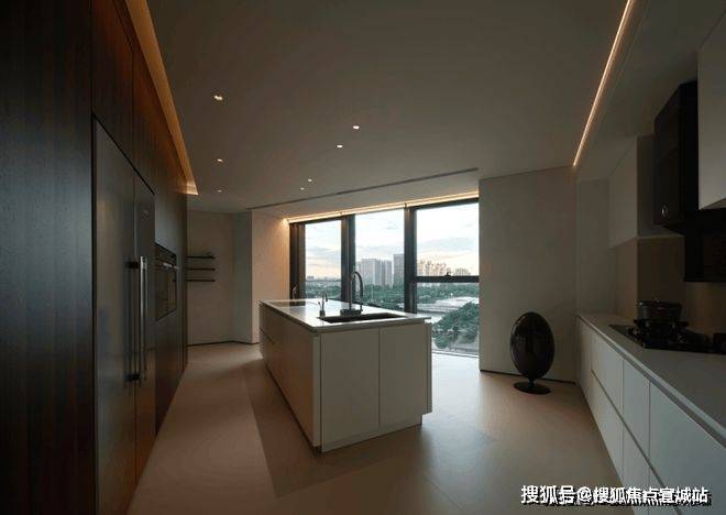 餐厨区,一个特别的结构橱柜,一面是厨房电器柜,另一面则是餐边柜。从餐厅划分部分面积给到厨房空间,就有了一个半敞开的西厨,跟中厨形成合作关系。