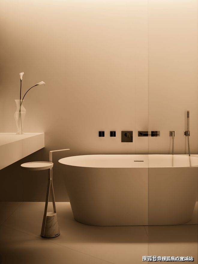 卫生间的设计,注重材质的耐用性、便捷性和美观性,并辅以灯光的设计,营造安静的氛围。