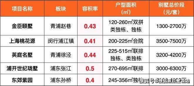 上海超低密别墅项目并不算多,2015年以来,容积率低于0.5的别墅仅有5个项目出售,总价皆在千万级起步,部分甚至达到五千万级。
