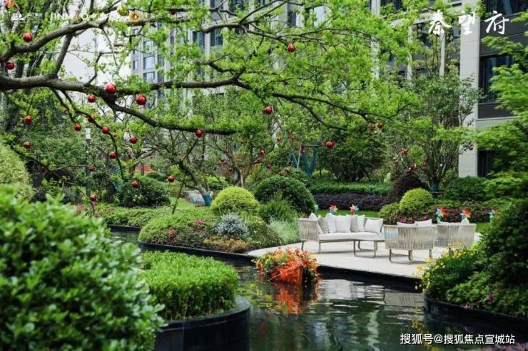 富春金茂星外滩·秦望府,高低错落的树木、镜面碧波的水景、自然舒适的会客厅、阳光宠爱的大草坪,繁花掩映间,建筑和景观融为一体,是自然生态更是美好生活的真实写照。