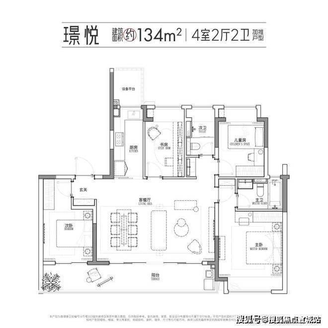 建筑面积约134㎡四室两厅两卫朗阔平层