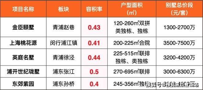 上海超低密别墅项目并不算多,2015年以来,容积率低于0.5的别墅仅有5个项目出售,总价皆在千万级起步,部分甚至达到五千万级。