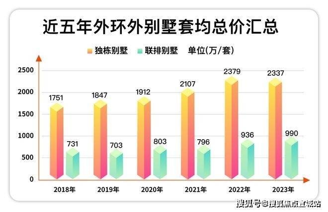 诺大的外环外,2023年联排别墅的套均总价在约990万/套,独栋别墅套均总价更是高达2337万/套。