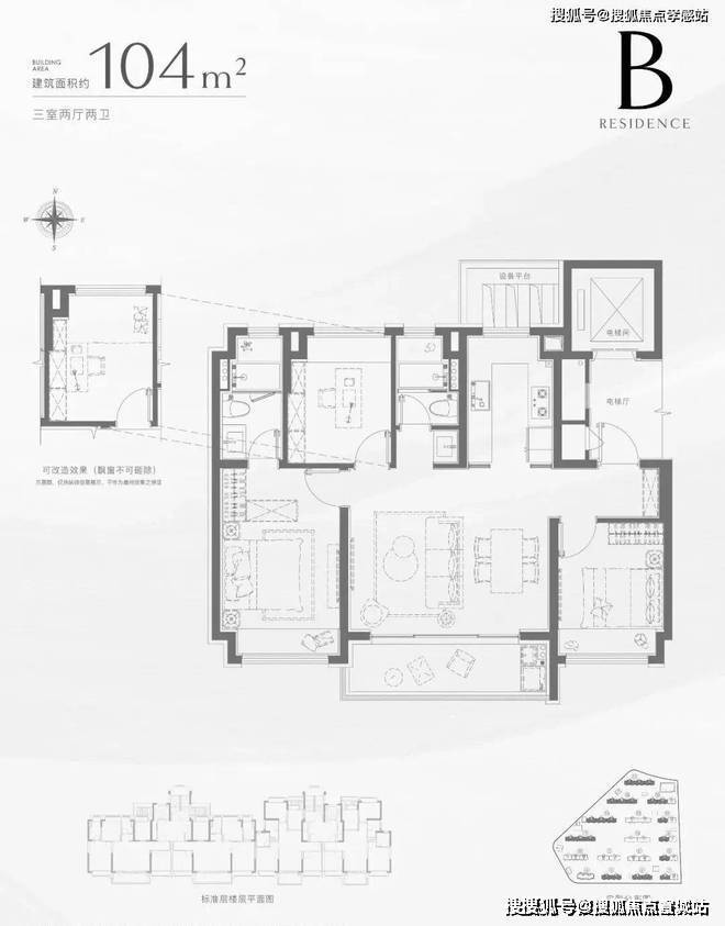 建筑面积约104㎡3房更懂生活的气派大横厅